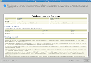 Once the database software is installed next step is to upgrade the database. Copy utlu112i.sql from the 11.2 ORACLE_HOME/rdbms/admin to a location outside ORACLE_HOME and run. The pre-upgrade configuration tool utlu112i.sql will list any work needed before the upgrade.