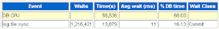 PreparedStatement pr = con.prepareStatement("select event,total_waits,TIME_WAITED_MICRO from V$SESSION_EVENT where sid=SYS_CONTEXT ('USERENV', 'SID') and event in ('log file sync','enq: CF - contention')");